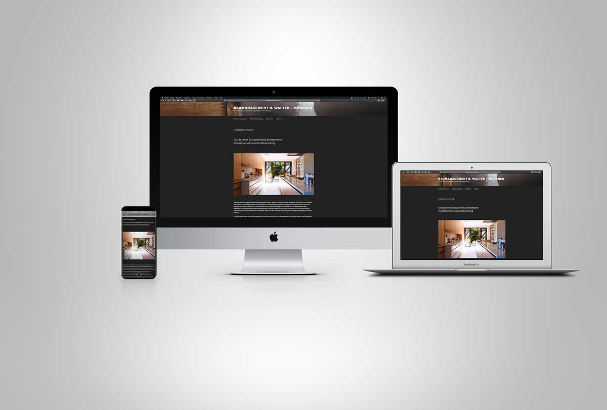 Für das Unternehmen Baumanagement B. Walter aus München wurde in Zusammenarbeit mit der Kundin eine Microsite geplant und umgesetzt.