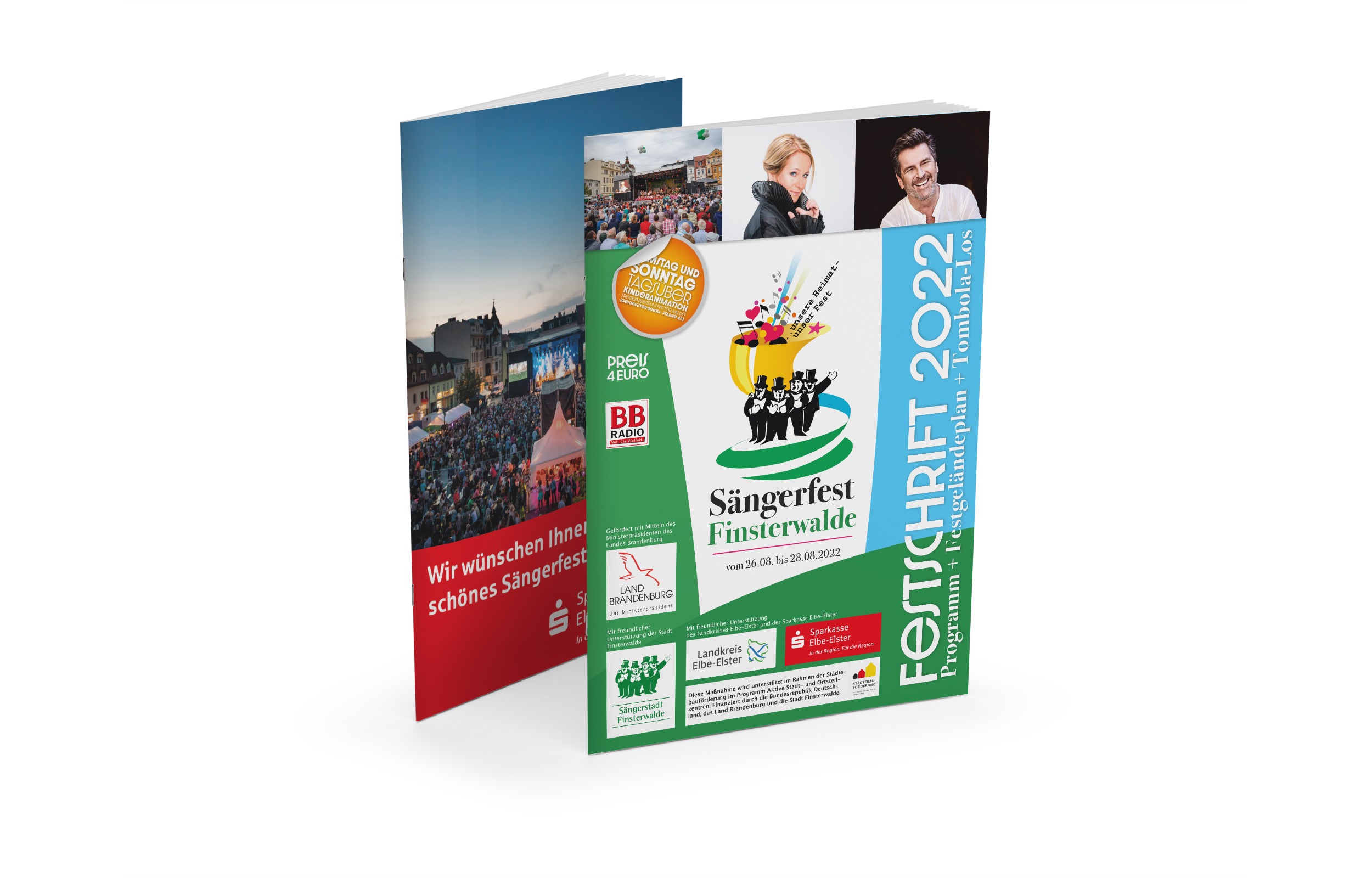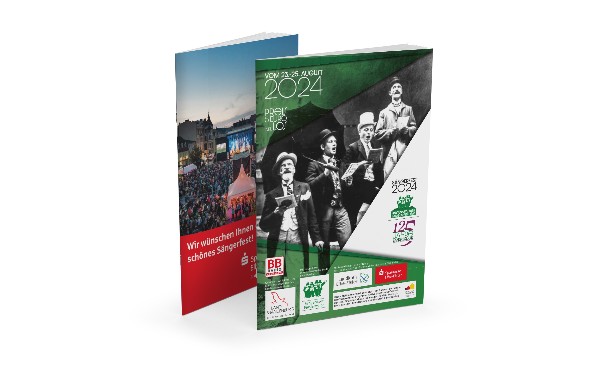 Neben der Website und der Festschrift wurden zahlreiche Druckerzeugnisse wie Eintrittskarten, Plakate und weitere Materialien gestaltet, um das Sängerfest umfassend und professionell zu begleiten. Dieses ganzheitliche Konzept unterstreicht die Bedeutung und Tradition des Finsterwalder Sängerfests und trägt dazu bei, die Veranstaltung weit über die Region hinaus bekannt zu machen.